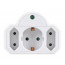 Αντάπτορας ρεύματος Powertech 3 θέσεων, 1x schuko και 2 διπολικών, με μηχανισμό ασφαλείας για παιδιά και προστασία υπέρτασης.
