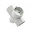 Aντάπτορας ρεύματος με τρία σούκο θηλυκά σε τάφ, 250V 16A, λευκός, ο οποίος κάθεται στην πρίζα σε κάθετη θέση.