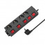 ΧΑΡΑΚΤΗΡΙΣΤΙΚΑ: 4x πρίζα ασφαλείας Με 5 φωτιζόμενους διακόπτες ON/OFF Έξοδοι σε θέση 90° Πρίζες με κλείστρο ασφαλείας IP20 για προστασία από επαφή με δάχτυλα ή παρόμοια αντικείμενα Κάθε πρίζα έχει μεμονωμένο διακόπτη, ένας πρόσθετος κεντρικός διακόπτης μπορεί να ενεργοποιήσει/απενεργοποιήσει ολόκληρο το πολύπριζο. Προστασία από υπέρταση Γωνιακό βύσμα ασφαλείας Ισχύς: 230 V/16 A, 50 Hz, μέγ. 3600 W Προδιαγραφή καλωδίου: H05VV-F 3G 1,5 mm² Μήκος καλωδίου: 1,5μ Χρώμα: Μαύρο