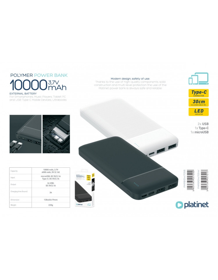 Το powerbank είναι εξοπλισμένο με δύο εξόδους USB, ώστε να μπορείτε να φορτίζετε δύο συσκευές ταυτόχρονα με γρήγορη ταχύτητα.