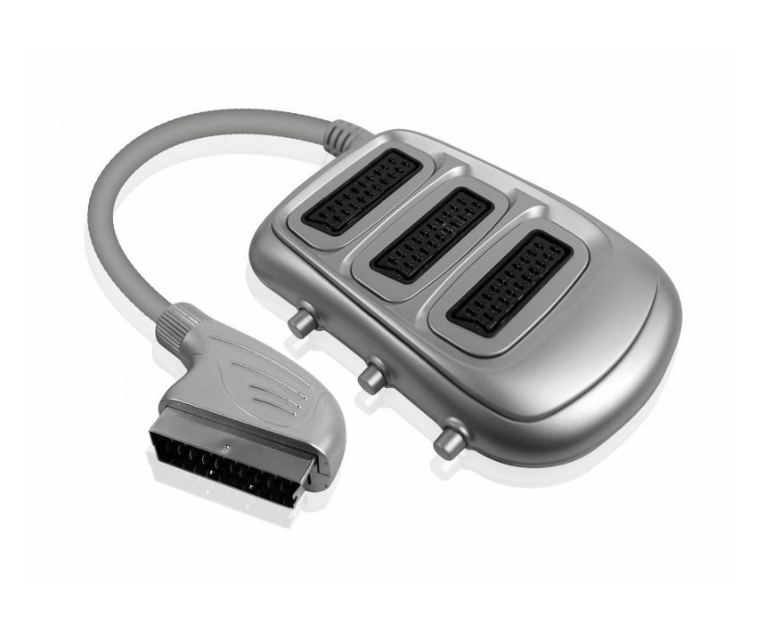 Powertech Πολύμπριζο scart από αρσενικό σε τρία θηλυκά, - με διακόπτη – Ασημί