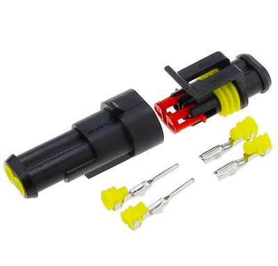Ζευγάρι αδιάβροχο αρσενικού και θηλυκού συνδέσμου με δύο επαφές για σύνδεση καλωδίου.